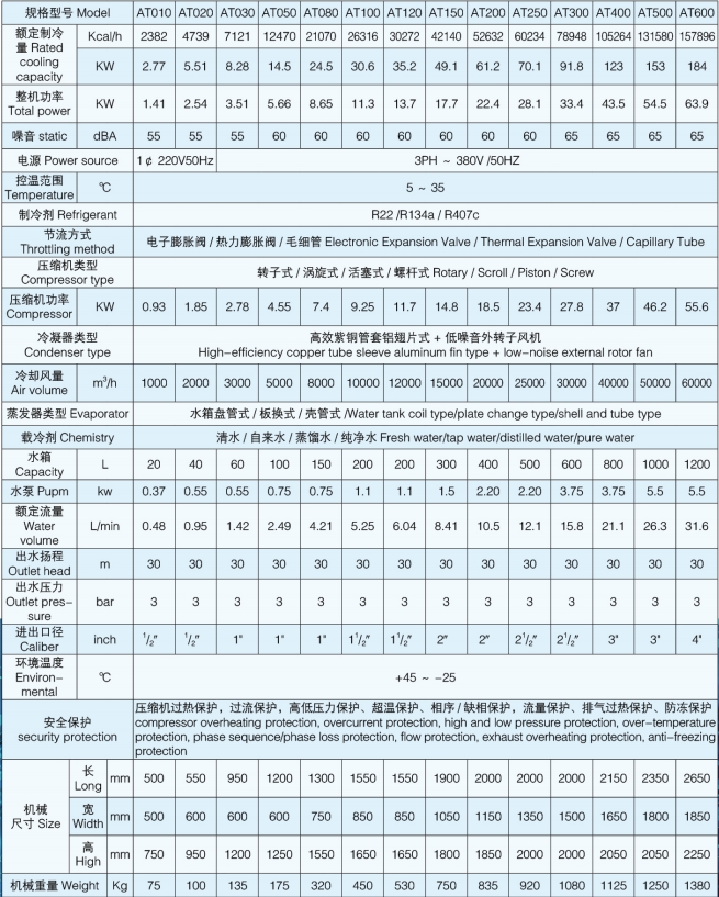 AT系列焊接工业冷水机主要用于生产型工厂的点焊机,滚焊机,高频焊机,缝焊机,焊接机器人,激光焊接机等各种焊接设备,环境适应能力强,主要优先选用国际知名品牌压缩机,制冷充分,效率极高,规格齐全,是新一代制冷设备的典范!