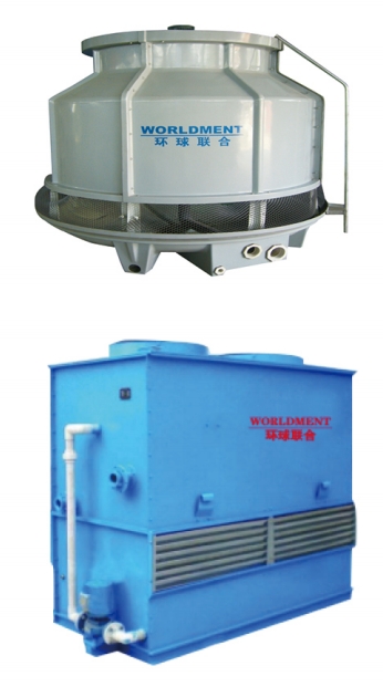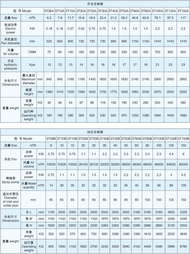 ST系列闭式水塔采用两级方式冷却,一级冷却采用风冷,依靠风对冷却器盘管进行冷却;二级冷却采用风冷和喷淋,在环境温度比较高时使用二级冷却,在风冷的同时喷淋系统将水淋到冷却器表面上,在水蒸发时能够带走盘管的热量,通过顶部的风机把湿热空气经脱水器回收后排出机外,从而达到冷却效果。环境温度比较低时,采用一级冷却。喷淋水的消耗量也仅为单位流量 0.1 - 0.2‰。ST系列闭式循环冷却塔 ( 蒸发式冷凝器 ) 作为热处理行业的主要辅助设备,已广泛运用于热处理淬火介质、可控气氛多用炉、感应加热炉、真空炉等等;同时也广泛适用于中央空调、锻造、铸造、化工、食品、注塑、印刷、发电机组、电厂、玻璃熔窑等领域。