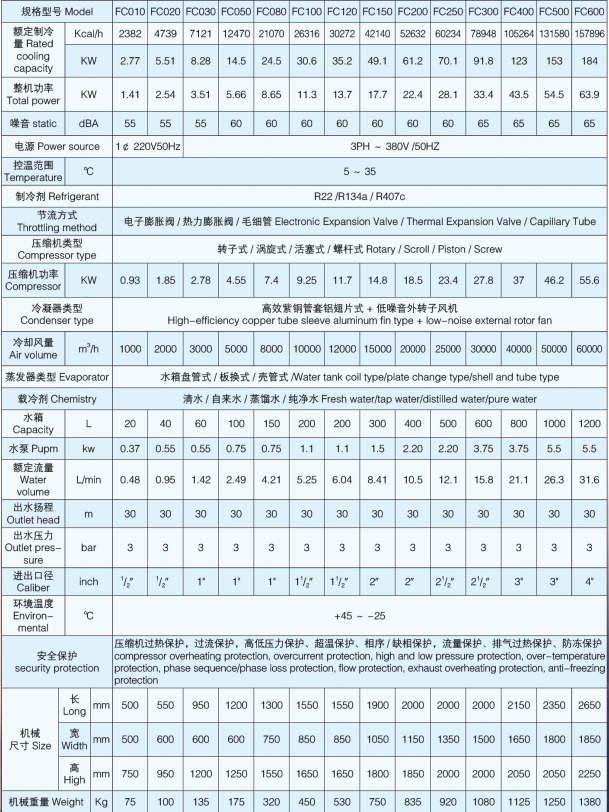 FC系列食品工业冷水机是根据食品行业的需求专业开发的一种比较有针对性的工业冷水机,整机载冷系统全部使用食品级不锈钢制成,压缩机,水泵等全部采用进口产品,噪音低,制冷快,完全符合食品行业的要求!
