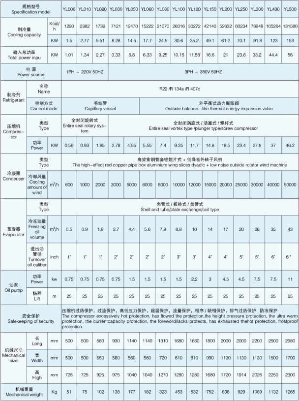 YL系列工业冷油机适用于数控机床、座标镗床、磨床、加工中心、组合机床及各种精密机床的主轴润滑油和液压传动油的冷却,能精确的控制油温,有效减少机床的热变形,提高机床的加工精度。还常用于脉冲试验台、爆破实验台、气密性试验台、制动管和动力转向管保压台、耐压试验台、真空试验台、制动软管挠曲疲劳试验台、阀门试验台、液压阀试验台、液压泵试验台、液压马达试验台、液压油缸出厂试验台等一系列工业检测设备的油冷却系统。同时还在车床、高速车床、内外径研磨机、放电加工机、油压机械、磨床、拉床、铣床、综合加工中心机、木工雕刻机、切削机械等工业设备加工行业得到了广泛应用。